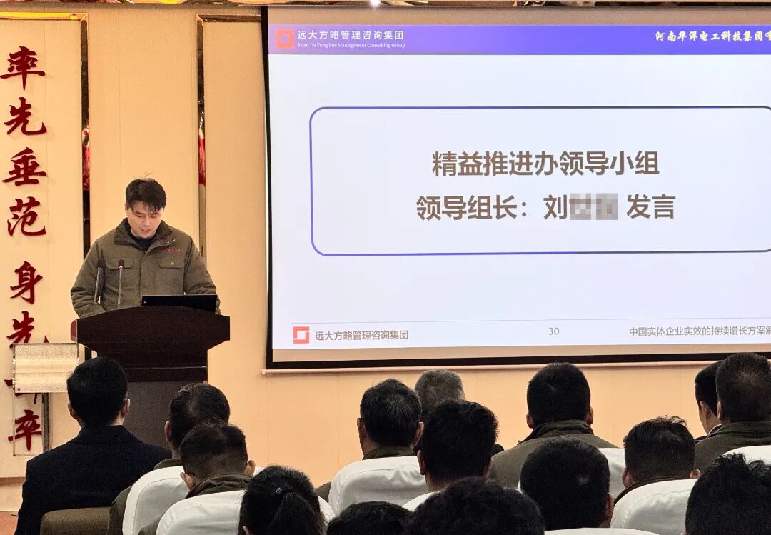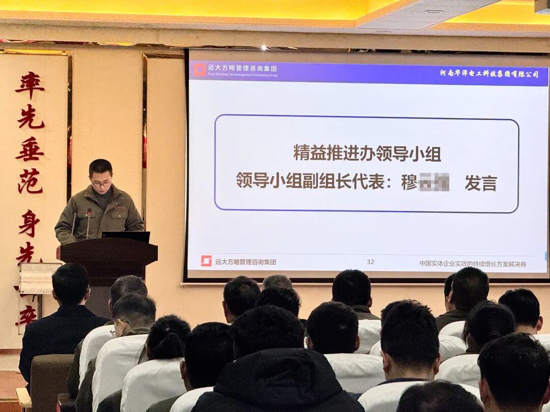 啟動(dòng)會(huì)上,項(xiàng)目組老師首先向華洋集團(tuán)對(duì)遠(yuǎn)大方略的信任表示感謝,老師針對(duì)企業(yè)當(dāng)前面臨的問(wèn)題,詳細(xì)闡述了已制定的專(zhuān)項(xiàng)改善計(jì)劃。此次改善計(jì)劃緊密結(jié)合企業(yè)實(shí)際情況,從提升管理效率、優(yōu)化生產(chǎn)流程、強(qiáng)化質(zhì)量管控等多個(gè)關(guān)鍵維度入手,旨在系統(tǒng)性地解決企業(yè)存在的痛點(diǎn),為企業(yè)注入新的發(fā)展活力。老師對(duì)計(jì)劃中的各項(xiàng)措施進(jìn)行了深入淺出的講解,讓企業(yè)員工對(duì)改善方向和具體做法有了清晰的認(rèn)識(shí)。