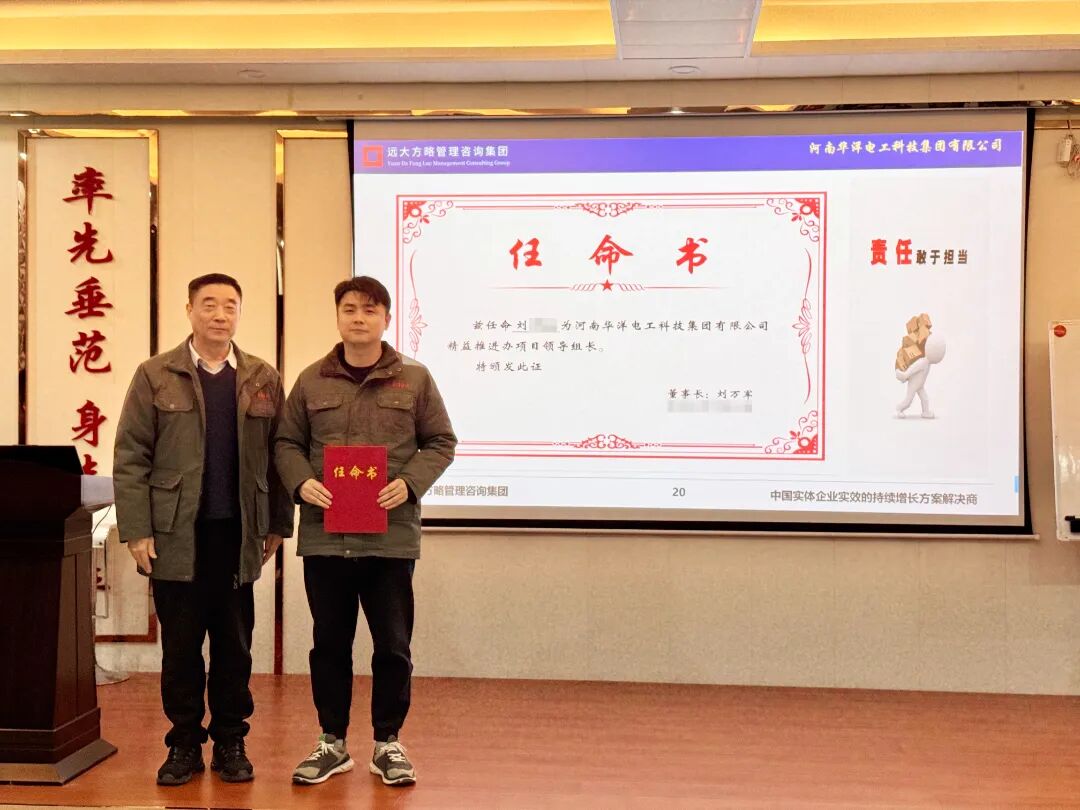 為促進(jìn)項(xiàng)目的有效落地,明確各崗位職責(zé),強(qiáng)化責(zé)任意識(shí),會(huì)上華洋集團(tuán)領(lǐng)導(dǎo)為遠(yuǎn)大方略項(xiàng)目組頒發(fā)了授權(quán)書(shū)和任命書(shū),同時(shí)也為領(lǐng)導(dǎo)組長(zhǎng)和領(lǐng)導(dǎo)小組核心成員頒發(fā)了任命書(shū)。